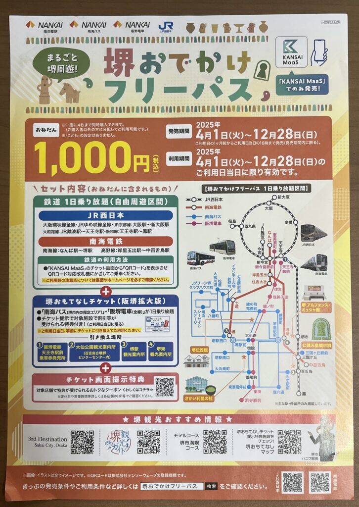 - 詳しくは、「堺おでかけフリーパス」検索 をご確認ください。